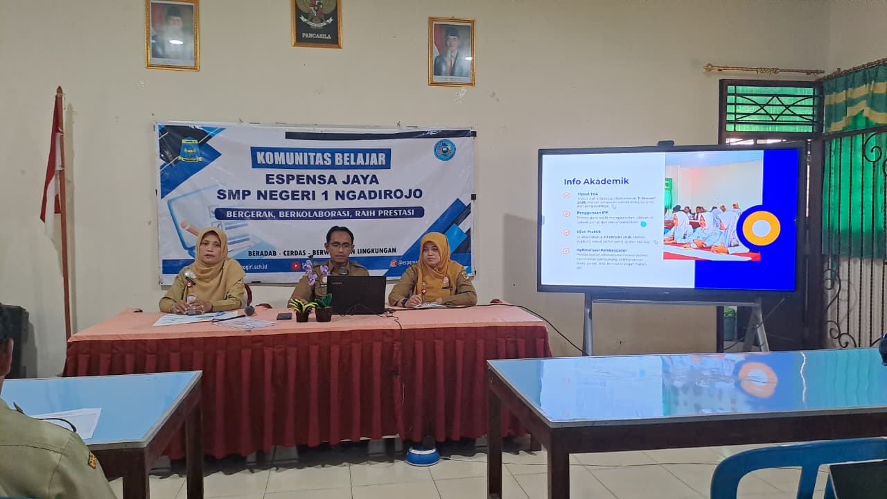 Dalam upaya menciptakan lingkungan belajar yang aman, nyaman, dan kondusif, SMP Negeri 1 Ngadirojo mengadakan Rapat Koordinasi Penguatan Peran Warga Sekolah pada Senin, 26 Januari 2026. Kegiatan ini dilaksanakan di Laboratorium IPA 1 dan diikuti oleh seluruh bapak dan ibu guru serta staf karyawan SMP Negeri 1 Ngadirojo.