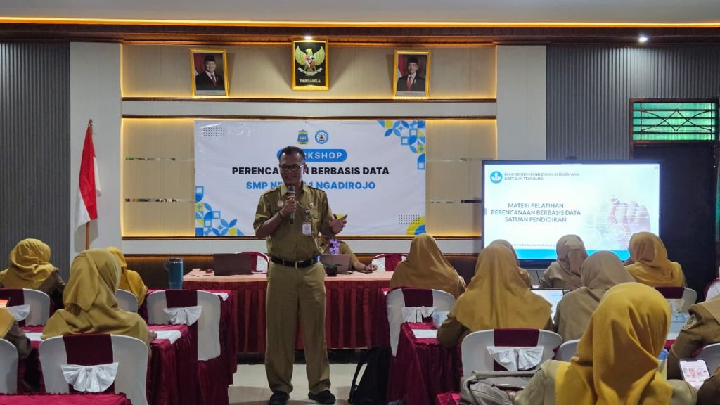 Kegiatan workshop perencanaan berbasis data yang diselenggarakan oleh SMP Negeri 1 Ngadirojo pada Senin, 27 April 2026, berlangsung dengan tertib dan penuh antusiasme di Laboratorium IPA (Espensa). Dimulai pukul 12.30 WIB hingga selesai, kegiatan ini menghadirkan seluruh guru dan tenaga kependidikan (GTK) sebagai peserta aktif, dengan Lusita Indriaswati bertindak sebagai moderator. Dalam sambutannya, Kepala Sekolah Agus Dwianto menegaskan pentingnya keterlibatan seluruh GTK dalam kegiatan ini sebagai upaya strategis untuk menyelaraskan visi dan misi sekolah. Beliau juga menekankan komitmen sekolah dalam mengkaji rapor pendidikan sebagai dasar pengambilan keputusan guna meningkatkan mutu layanan pendidikan secara berkelanjutan.