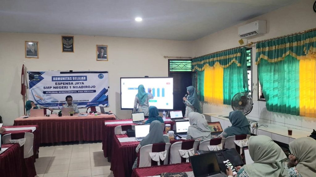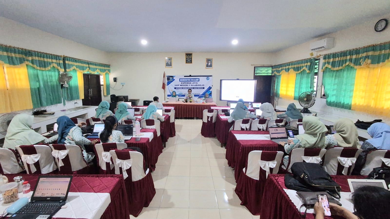 Kegiatan workshop peningkatan kompetensi guru dalam digitalisasi pembelajaran dilaksanakan di SMP N 1 Ngadirojo dengan diikuti oleh seluruh guru. Bertempat di laboratorium IPA, kegiatan ini berlangsung dengan penuh antusias sebagai upaya meningkatkan kualitas pembelajaran berbasis teknologi di lingkungan sekolah.