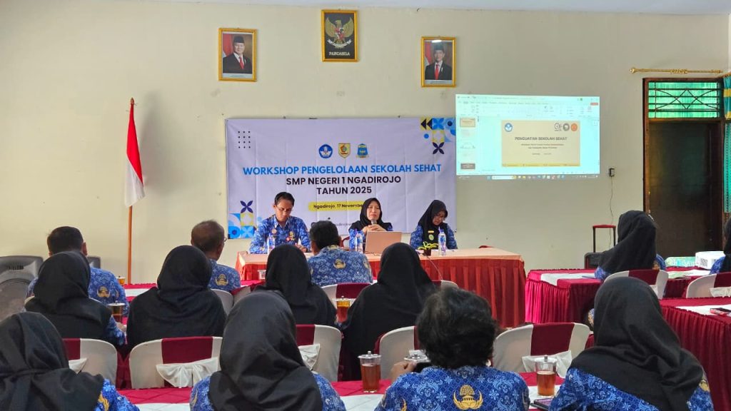 Semangat memperkuat budaya sehat mengalir deras di Ruang Laboratorium IPA SMP Negeri 1 Ngadirojo, Senin, 17 November 2025. Tepat pukul 12.30 WIB, workshop bertajuk Pengelolaan Sekolah Sehat resmi digelar. Acara dibuka oleh moderator, Apri Indriyati, yang dengan lugas menuntun jalannya kegiatan. Lantunan lagu “Indonesia Raya” mengawali sesi, memantik semangat kebangsaan sebagai pengantar menjadikan Espensa sebagai lingkungan belajar yang sehat, aman, dan nyaman.